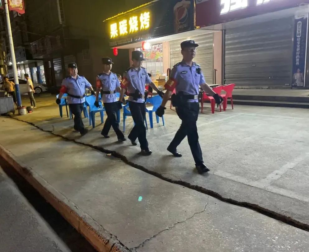 结合夏季治安形势特点,组织警力持续加大对广场、商圈、夜市、烧烤摊位等夜间人员密集路段的巡查力度,不断增强社会面威慑力、控制力,最大限度屯警街面,提高街面见警率”和“管事率”,不断增强社会面威慑力、控制力,全力维护社会大局持续安全稳定。
